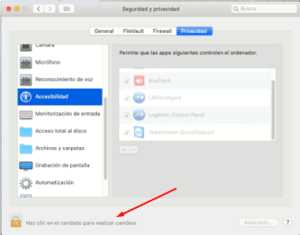 - Vamos al apartado de Accesibilidad y habilitamos programa de acceso remoto que usemos.